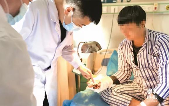 从猪嘴里抠出断指后,陈先生赶紧前往当地人民医院治疗。“我们那里的医生说,他们只能做到把手指从关节处截掉,如果我要尽可能长的保留手指,建议我们来昆明治疗。”于是,陈先生带着断指赶到了昆明,于当天下午4点抵达云南中德骨科医院。