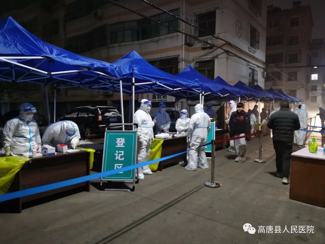疫情发生后,高唐县人民医院迅速响应,1月22日晚11点,医院疫情防控指挥部向全院抽调的100余名医护人员组成的核酸检测支援队伍发出号令,要求核酸采集第一梯队迅速集结,凌晨两点,所有队员集结完毕待命,做好全部防护工作。凌晨四点,全体人员按指令进入小区开始第一轮核酸检测。我们看到了那些熟悉的同事面对疫情毅然前行的匆匆脚步,也目睹了高医人临危受命时坚强无畏的高大背影。