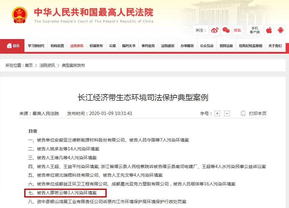 经审理,蓝山法院以污染环境罪判处被告人廖某等3人四年至一年不等的有期徒刑,并处10万元至5万元不等的罚金。2020年,该案被评为长江经济带生态环境司法保护十大典型案例。