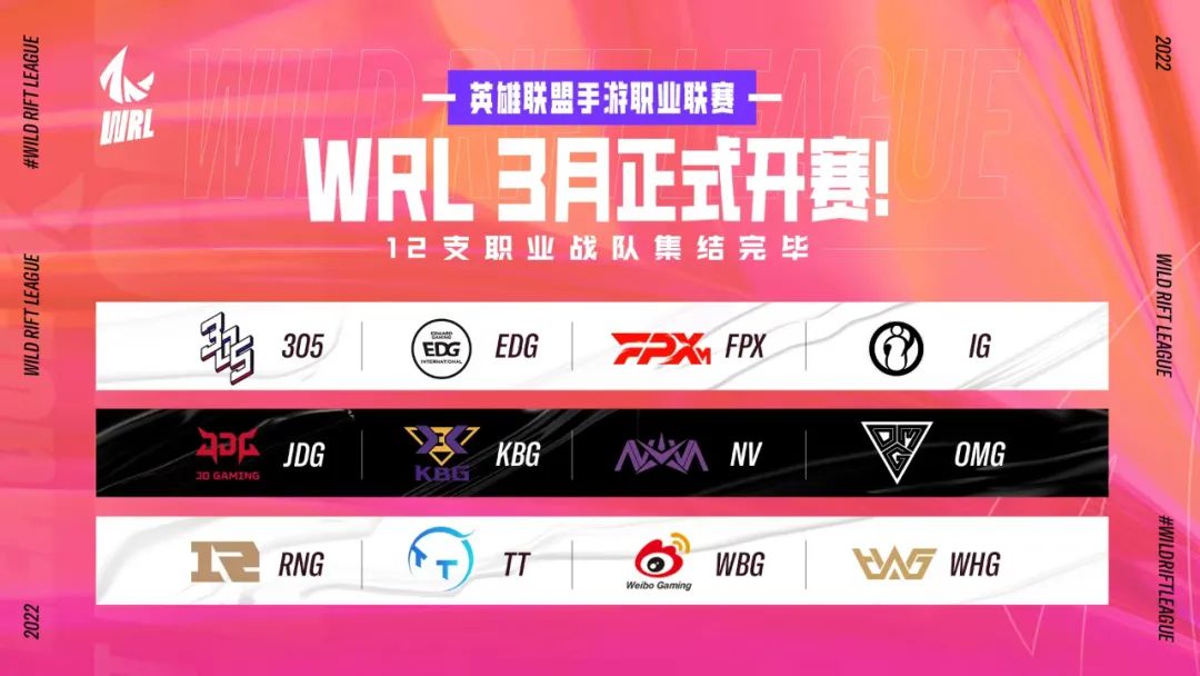 第一届英雄联盟手游职业联赛(WRL)将于今年3月正式开赛,目前12支战队已集结完毕。