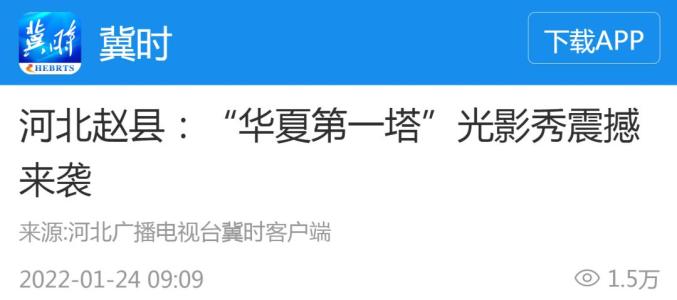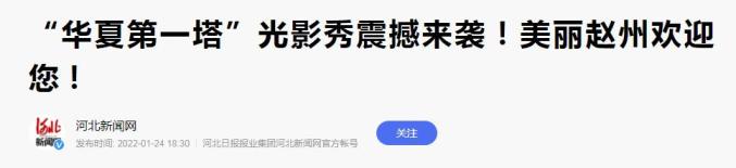 冀时客户端报道(河北台 杜岩卿 通讯员 朱涛)“华夏第一塔”——赵州陀罗尼经幢光影秀1月25日(农历腊月二十三)至2月15日(正月十五),每晚19:00——21:30,逢半点、整点展演。