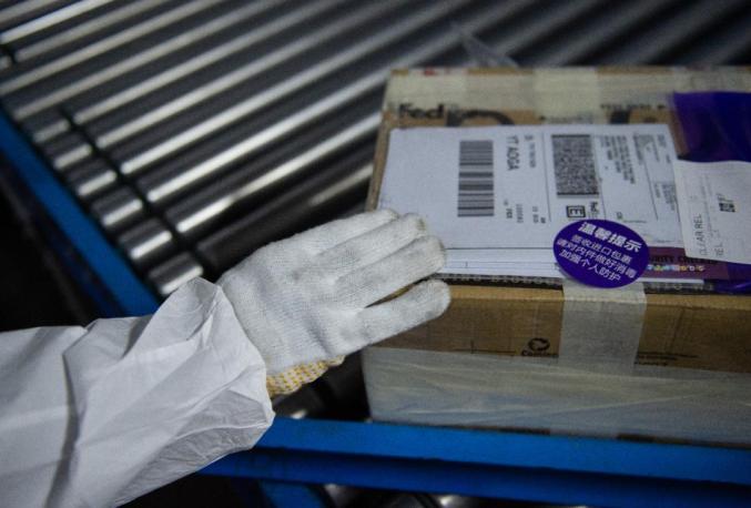 这是1月21日拍摄的贴有防疫提示的境外邮件。新华社记者陈钟昊 摄