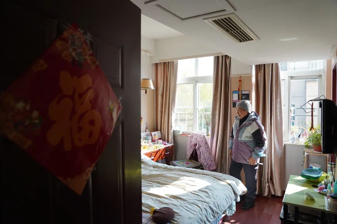 说起来这里的原因,高彩英指了指正在屋外走廊上晒着太阳听收音机的老伴说:“2017年,老头子摔了一跤,上海医院住不进去,听说这里有护理院,就来了。结果住了三个月的护理院,正好C区开放,我们就直接搬了过来。”