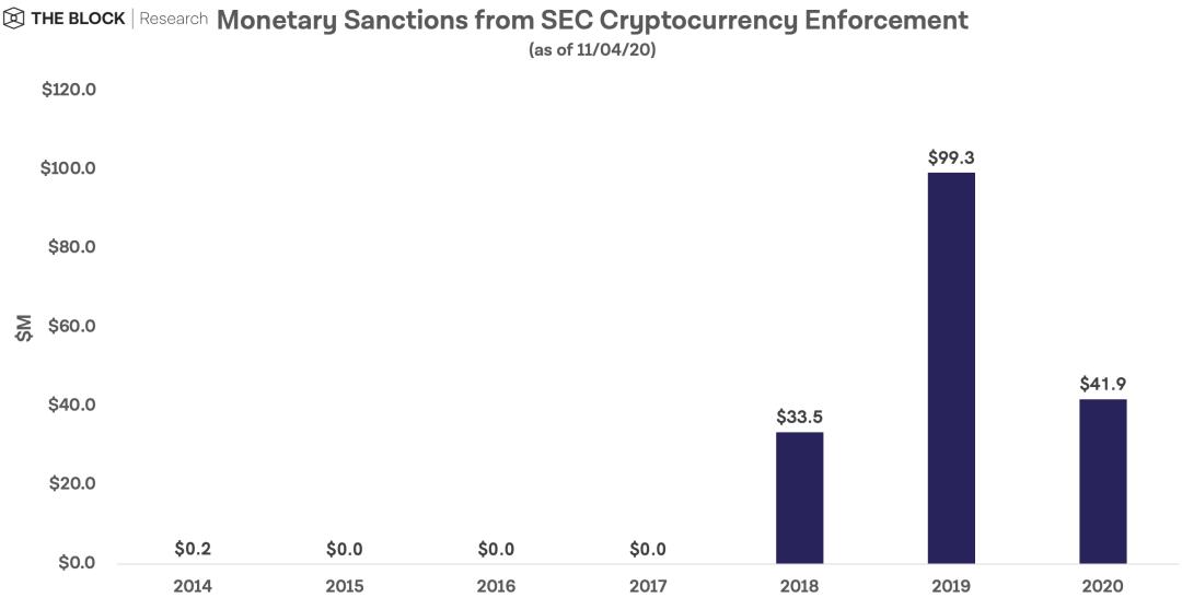 ▲美国证券交易委员会(SEC)对数字货币累计开出至少1.75亿美元罚单