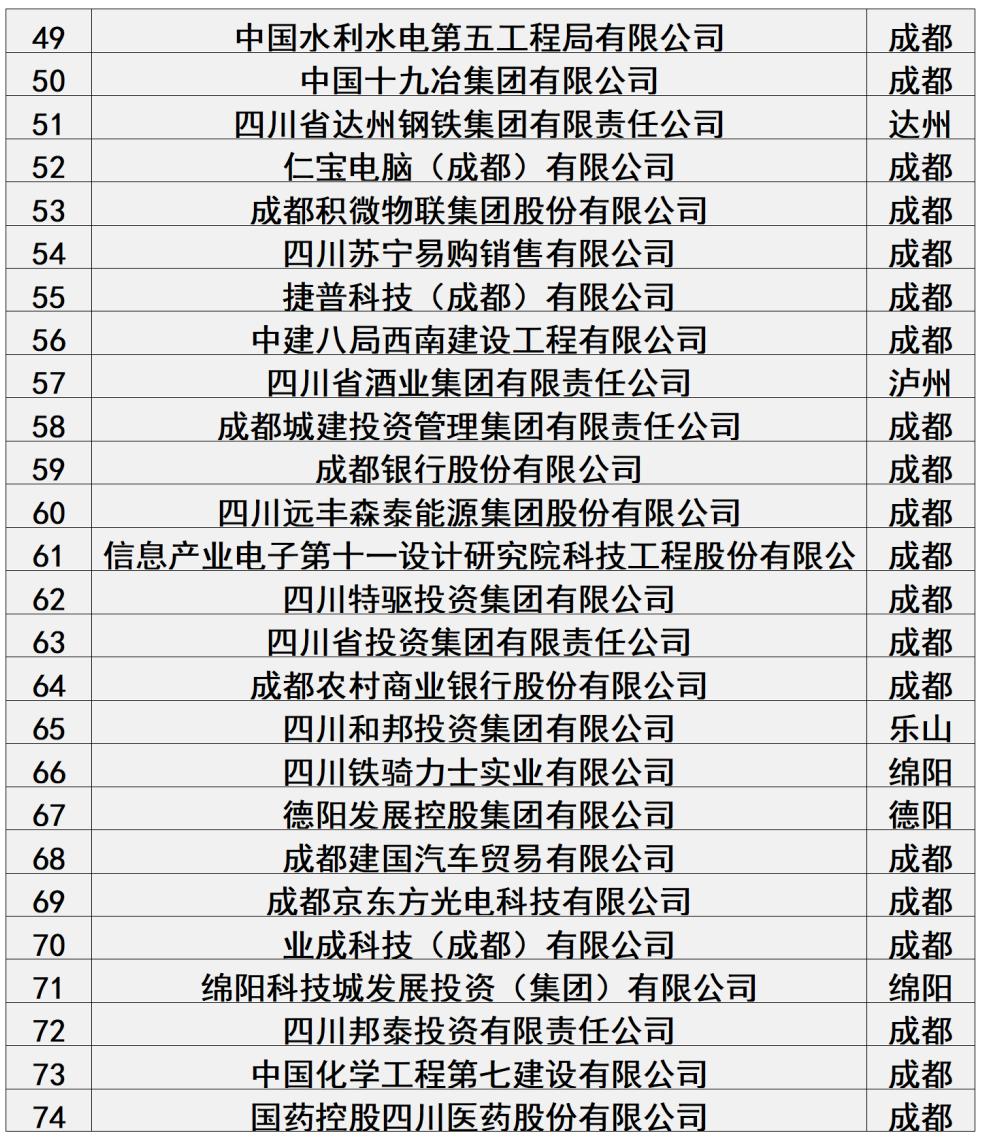原标题:《四川100户大企业大集团名单发布!你的公司上榜了吗?》