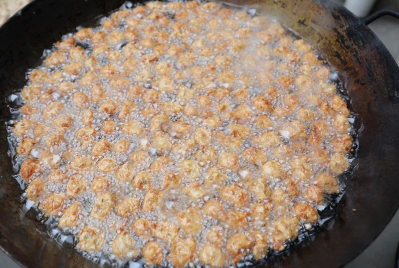刚出锅的丸子尝上一口,外焦里嫩,好吃极了。“小时候家里条件不太好,过年炸的丸子要留着待客,为了避免我们姐妹们围着锅边炸边吃,母亲总是晚上等我们迷糊了才开始炸。我们半迷半醒中,母亲给每人塞几个尝尝鲜,有时早上醒来发现丸子还在床头上又赶紧塞到嘴里,回想起那个时候,特别有意思。”王红霞回忆道。