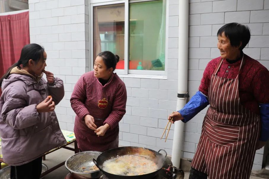 今天,过来帮忙的还有王红霞74岁的婆婆,她告诉记者,她是一个对过年有着特殊情怀的人,每到年前一定会和家人孩子一起炸丸子、豆腐这一类的,就是为了等年三十那天晚上全家人一起围坐桌前,边看春晚、边吃团圆饭,一家人其乐融融。