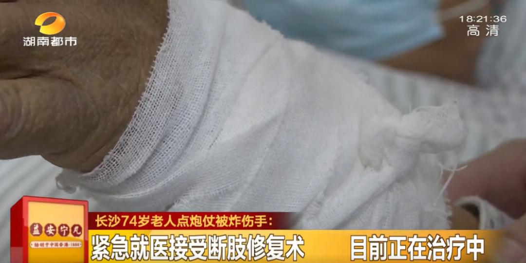 1月23日上午,长沙74岁的陈先生在屋外放炮仗时,右手就不慎被炸伤,家人紧急将他送往医院救治。