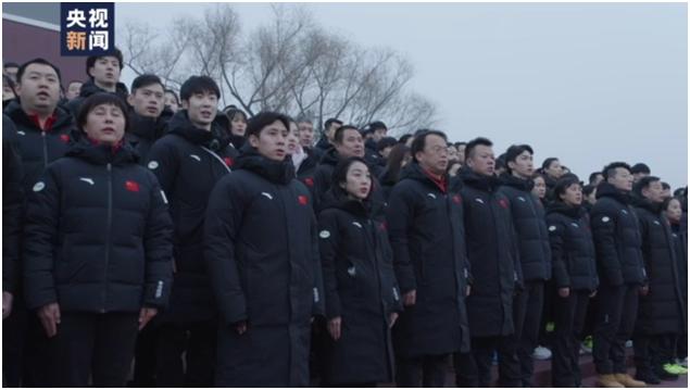 北京冬奥会中国体育代表团在天安门广场宣誓出征。25日清晨,来自北京冬奥会中国体育代表团的100多名运动员和教练员代表,来到天安门广场观看升国旗仪式,并宣誓出征。