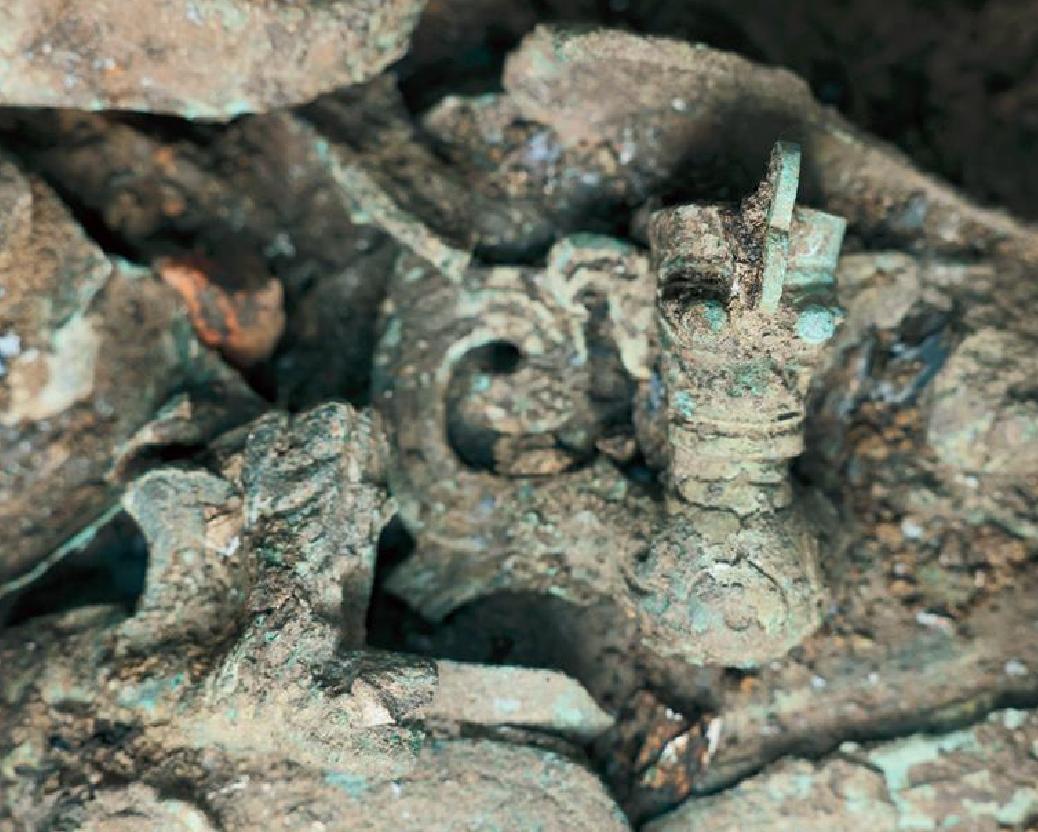 三星堆遗址3号祭祀坑出土的铜鸟人(四川省文物考古研究院三星堆研究院 供图)