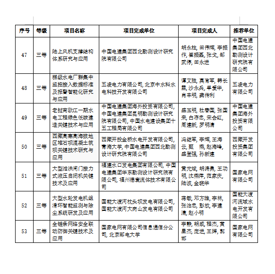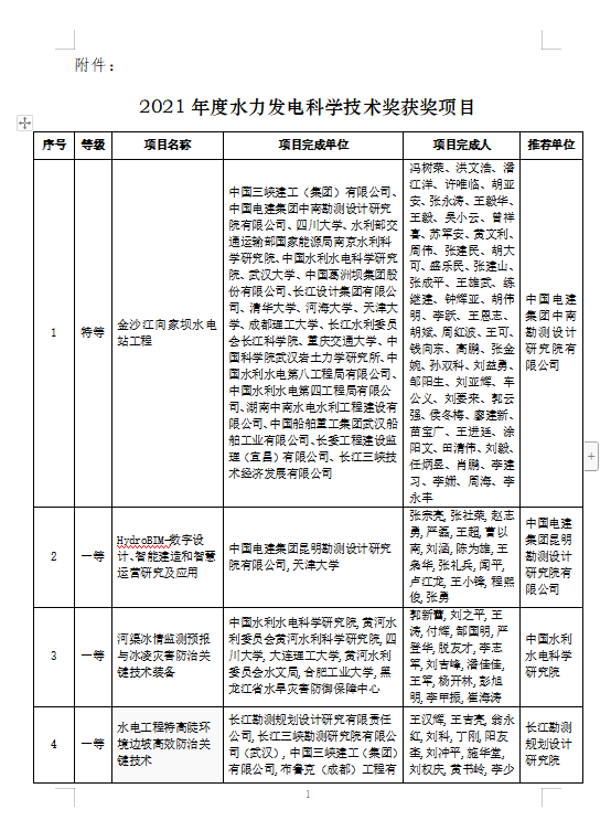 中国水力发电工程学会、水力发电科学技术奖励委员会日前联合印发《关于2021年度水力发电科学技术奖奖励的决定》,并公布了“2021年度水力发电科学技术奖”53项成果获奖项目。
