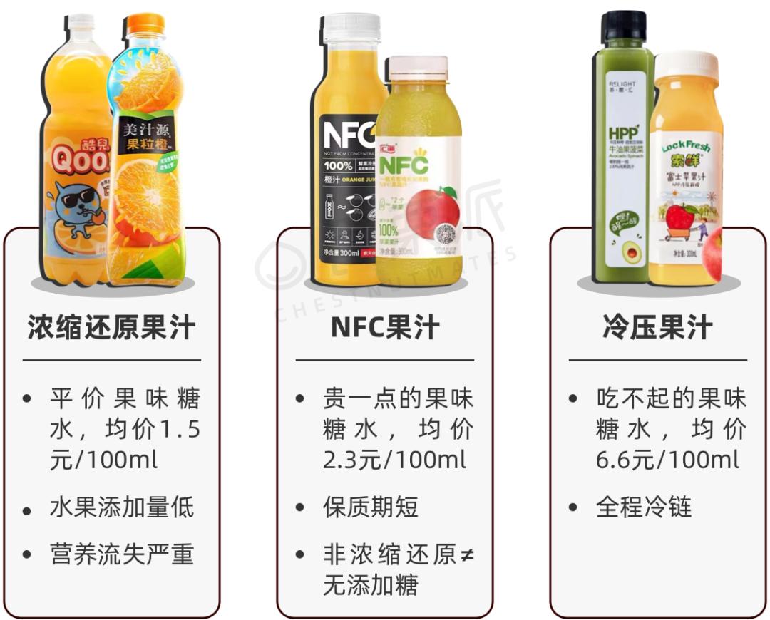 看价格,冷压果汁>NFC果汁>浓缩还原果汁;论营养,理论上来说,冷压果汁>NFC果汁>浓缩还原果汁;