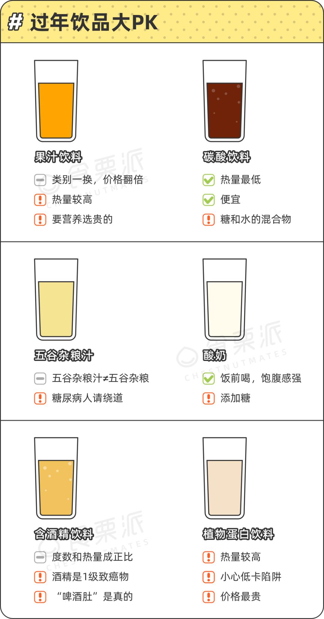 今天,小栗子就来扒一扒各种过年饮品,帮助大家选择最适合过年喝的饮品,防止大家不知不觉喝胖、喝穷。