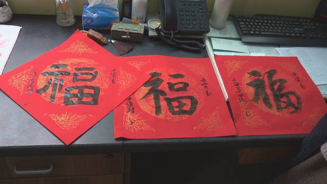 而在929路调度室里,驾驶员黄城正在奋笔疾书,车队专门采购了一批春联纸、毛笔和墨汁,黄城便利用自己的休息时间,变着花样写各种字体不同的福字送给车上的乘客。