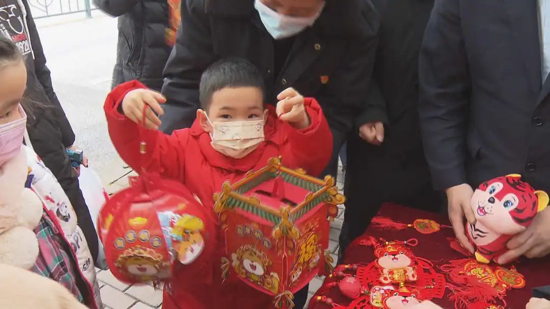 而在儿科医院对面的171路终点站万源路顾戴路,车队工作人员正免费向孩子们赠送卡通老虎挂件、虎年装饰以及亲手制作的新春灯笼。