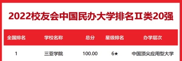 1月25日,备受关注的2022校友会中国大学排名正式发布,三亚学院问鼎2022中国民办大学排名第一。