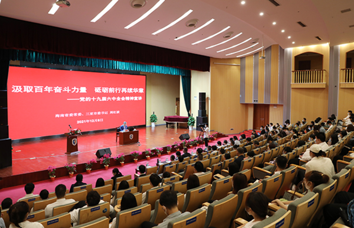 省委常委、市委书记周红波在三亚学院向师生宣讲党的十九届六中全会精神
