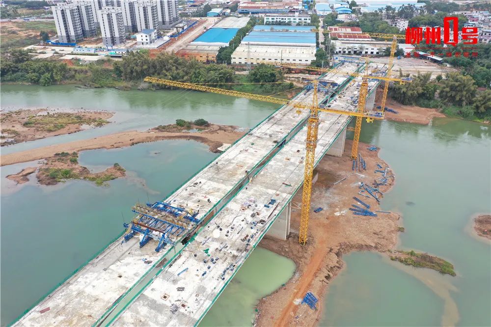 据施工方相关负责人介绍,柳东新区官塘片曙光大道(雒容段)洛清江大桥主桥于2019年8月开工建设,其间经历两次大洪水,施工方克服重重困难,1月25日下午主桥得以正式合龙。大桥全长752米,其中主桥横跨洛清江,全长384米,桥跨为预应力连续刚构桥,桥梁采用左右分幅式桥梁,单幅桥面宽度约20.5米。余下桥梁附属设施和沥青铺设等工程项目将于春节后开展。
