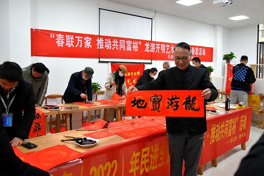 民进浙江省委会在机关会议室举办浙江民进壬寅(2022)年“春联万家·推动共同富裕”活动,省委会副主委张宝珍出席活动,浙江民进开明画院副院长王玮、柳晓康及书法篆刻专业委员会张华飚、陈硕等参加创作。