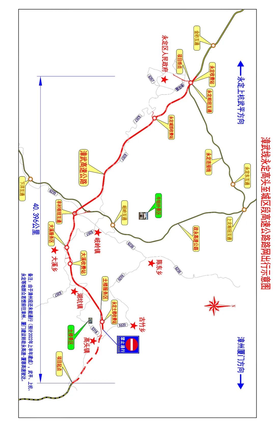 特别提醒!!!由于漳武线(漳州段)尚未完工,预计将于2022年上半年建成通车,武平、上杭、永定等地群众若想前往漳州、厦门等地,建议选择政永高速、厦蓉高速前往。待漳武高速(漳州段)建成通车后,武平、上杭、永定前往厦门不再需要取道绕行龙岩,可缩短约半小时车程。