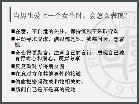 比如说,当男生爱上一个女生的时候,他会有什么表现,男生的普遍回答是这样的。