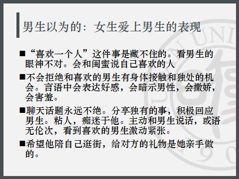 比如说如果你是女生,你喜欢上一个男生,你会有什么表现?你觉得男生喜欢上你会是什么表现?
