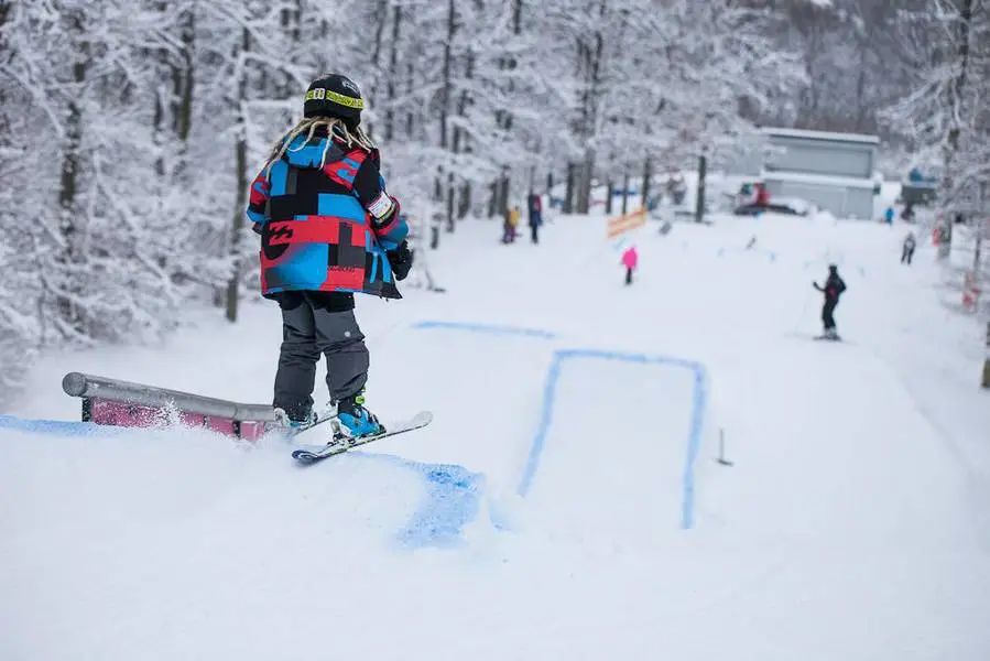 雪地公园的栏杆、气囊和滑雪课程,可以让大孩子们不歇气的玩上好几个小时。