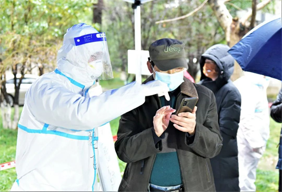 而在检测点外部,管理中心办公室的赵奉武,坚守“出口”这一工作阵地,他既要负责疏散完成检测的人群避免集聚,又要维护好现场秩序。他说:“我是军人出身,关键时刻更要责无旁贷!”