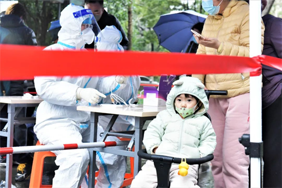 港航执法队党建政工处的潘诚一早守在风雅钱塘小区检测点。现场共设置8个核酸采样通道,每个通道有2个人维护负责现场秩序。“我们在做好亮码(信息码、健康码)登记的同时,根据现场情况及时调整方案。有的小朋友看到核酸检测以为要打针,吓得一直哭。我们就尽可能做好情绪安抚工作。”潘诚说, “我也有小孩,大家将心比心,希望我们的服务让大家在冬日里能感受到丝丝暖意,也希望在大家共同努力下,疫情能早日过去。”