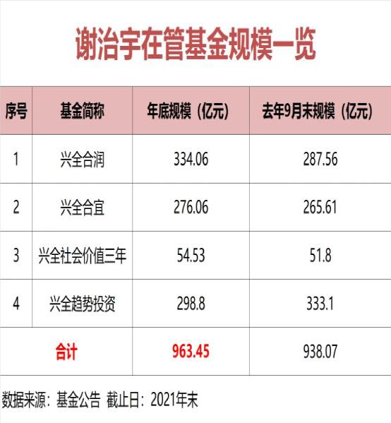 临近春节之际,兴证全球基金公告,谢治宇从1月28日起新任公司副总经理。截至去年四季度末,谢治宇在管基金总规模为963.45亿元,距离千亿仅一步之遥;他管理的兴全合润基金9年来任期回报高达639%。