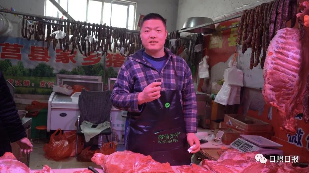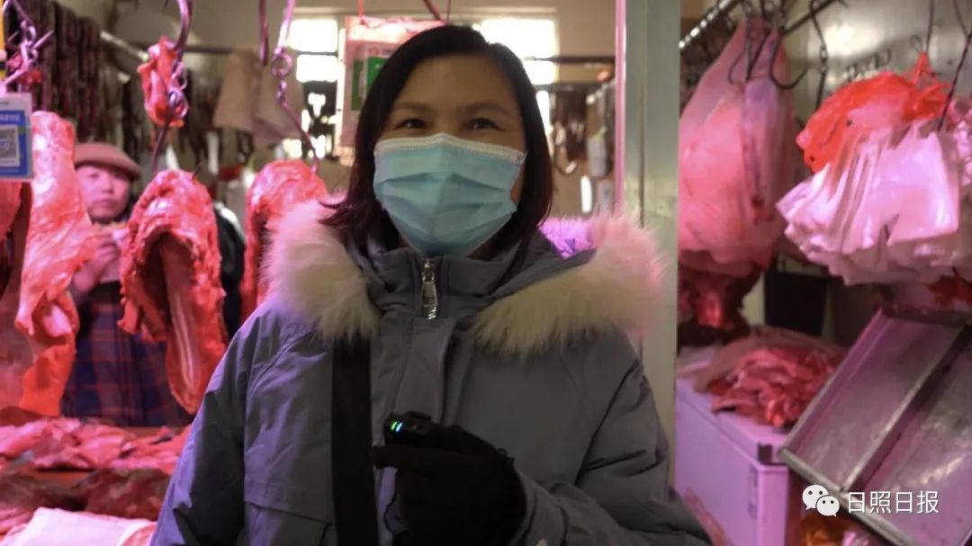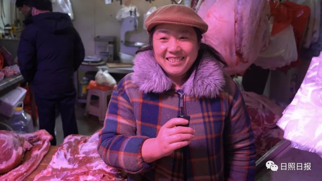 今年的肉价比去年便宜了一半左右,去年三十多,今年才不到二十每斤,临近春节客流量也比平时多了许多,前来购买前腿肉、五花肉和排骨的顾客比较多。