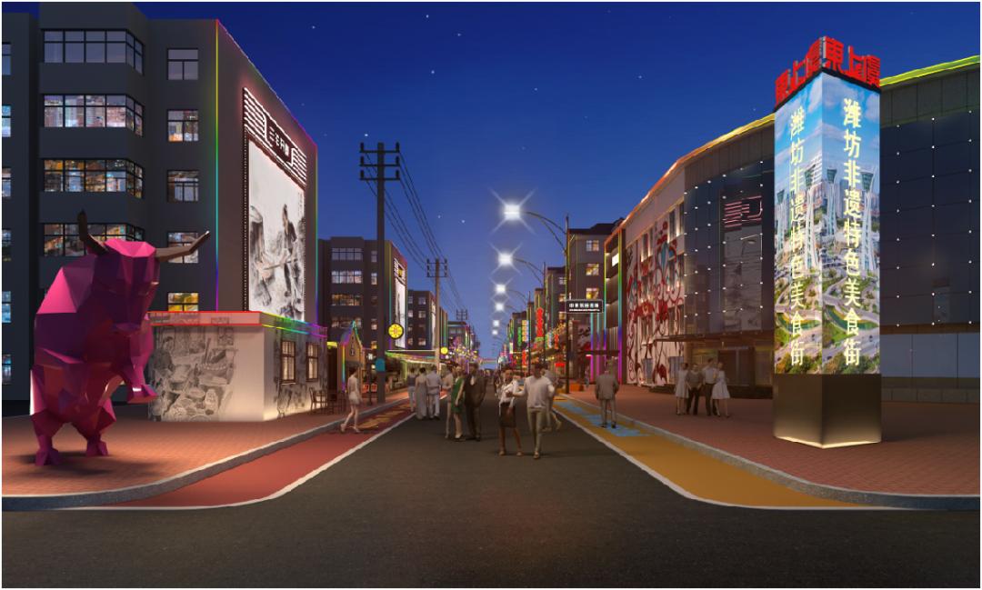 潍坊非遗特色美食街项目是奎文区广文街道重点打造的特色主题街,项目的签约标志着主题街建设正式拉开帷幕。潍坊非遗特色美食街项目总投资1000万元,以“有故事的老潍县,有味道的东上虞”“非遗美食汇聚,旅游休闲打卡地”为主题,致力打造山东省首个非遗社区,集各种非物质文化遗产、美食与文化相融合的城市新名片,成为潍坊最具文化特色、美食汇集地。潍坊非遗特色美食街的总体风格是“老潍县国潮风”,街区厚重历史沉淀,渲染怀旧色彩,搭配移动商业,辅以非遗浮雕,形成“网红打卡点”。