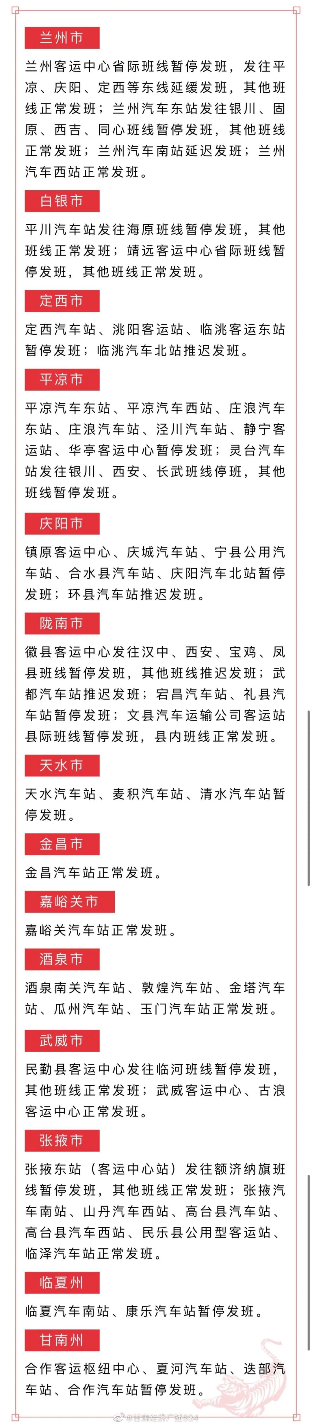 1. G22青兰高速平凉西至白水段各收费站入口往宁夏方向、泾川西至庆阳北段各收费站入口双向、老城至太白段各收费站入口双向临时交通管制,禁止所有车辆驶入高速;驿马至合水段各收费站入口对除三轴及三轴以上货运车辆外的其他车辆临时交通管制。