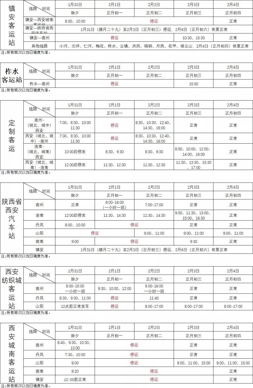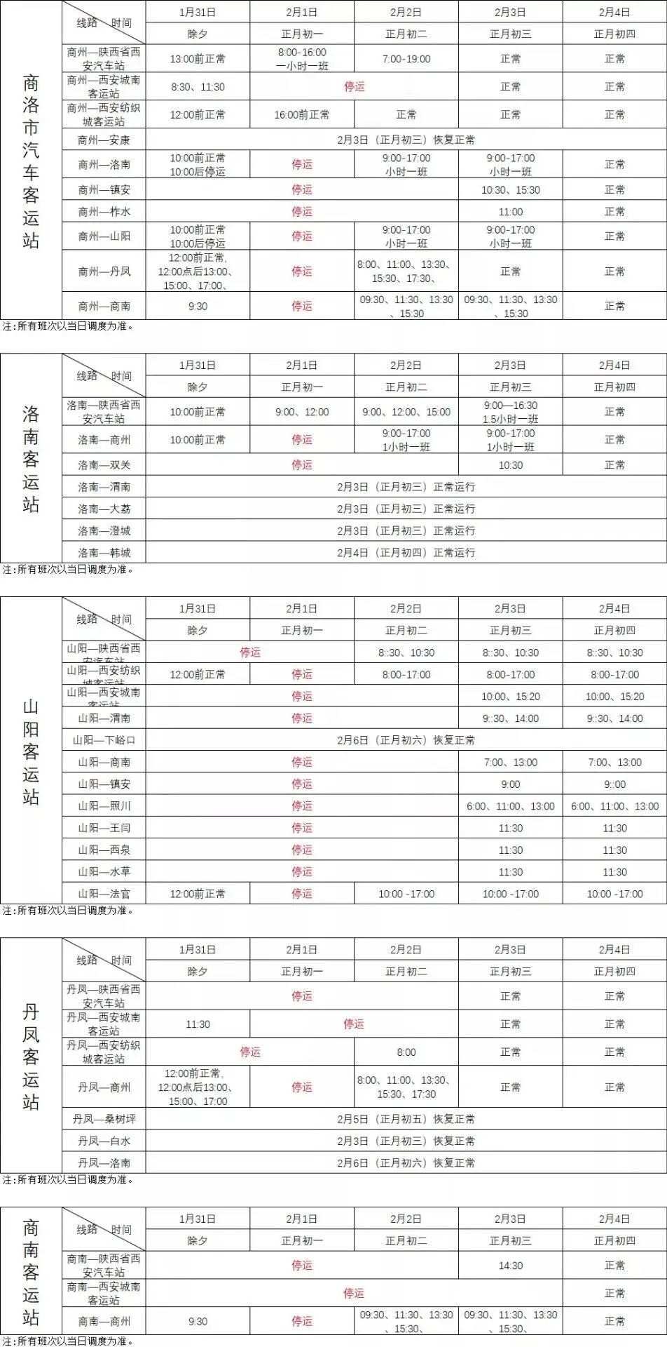原标题:《关注!春节期间商洛各汽车客运站运行班次表公布》