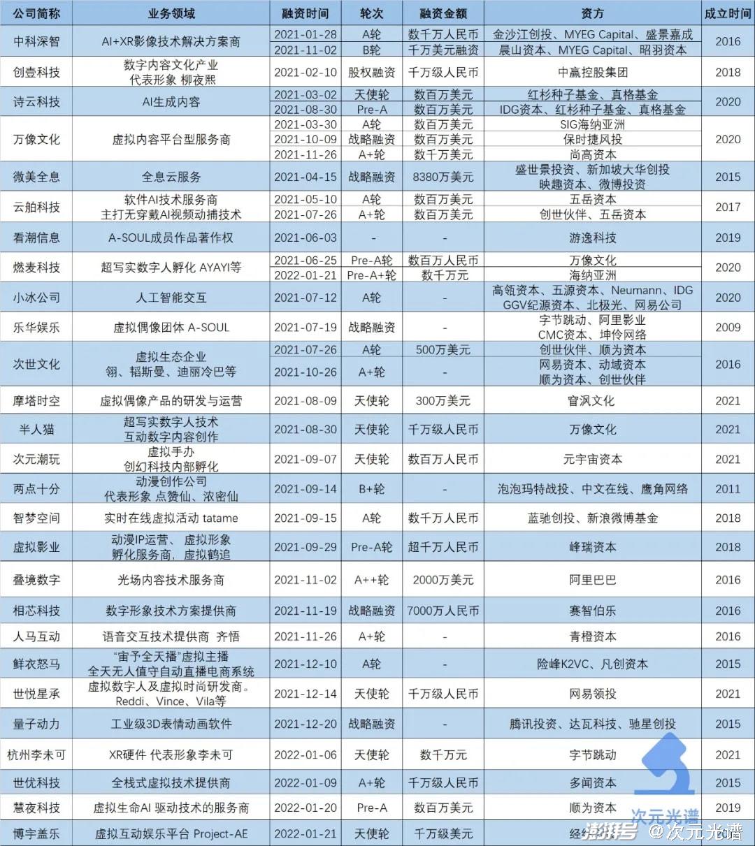 在去年先后投资燃麦科技、半人猫文化、谛视无限的万像文化,本身就是一家整合技术开发应用、内容创意生产、IP孵化运营、场景落地商业化,连接整个行业上下游生态的虚拟内容平台型服务商。