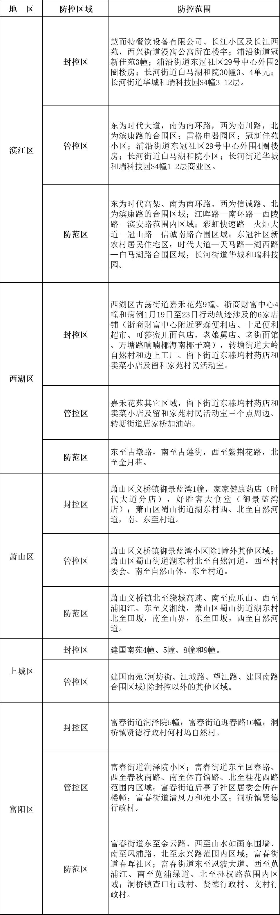 附:杭州市封控区、管控区、防范区一览表(截至2022年1月28日15点)