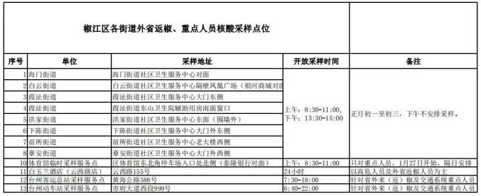 二、做好核酸检测。行程码带*(星号)的来(返)椒江人员须持48小时核酸阴性证明,未持核酸阴性证明者抵达椒江后必须第一时间进行一次核酸检测。