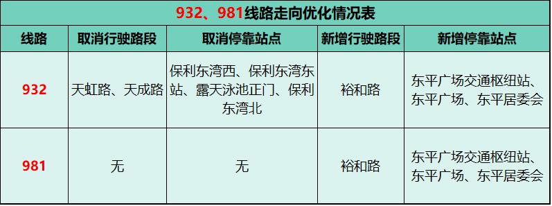 981线路调整后信息表