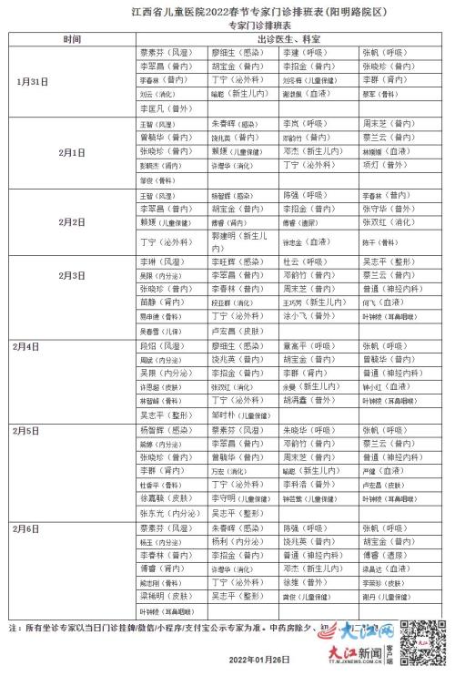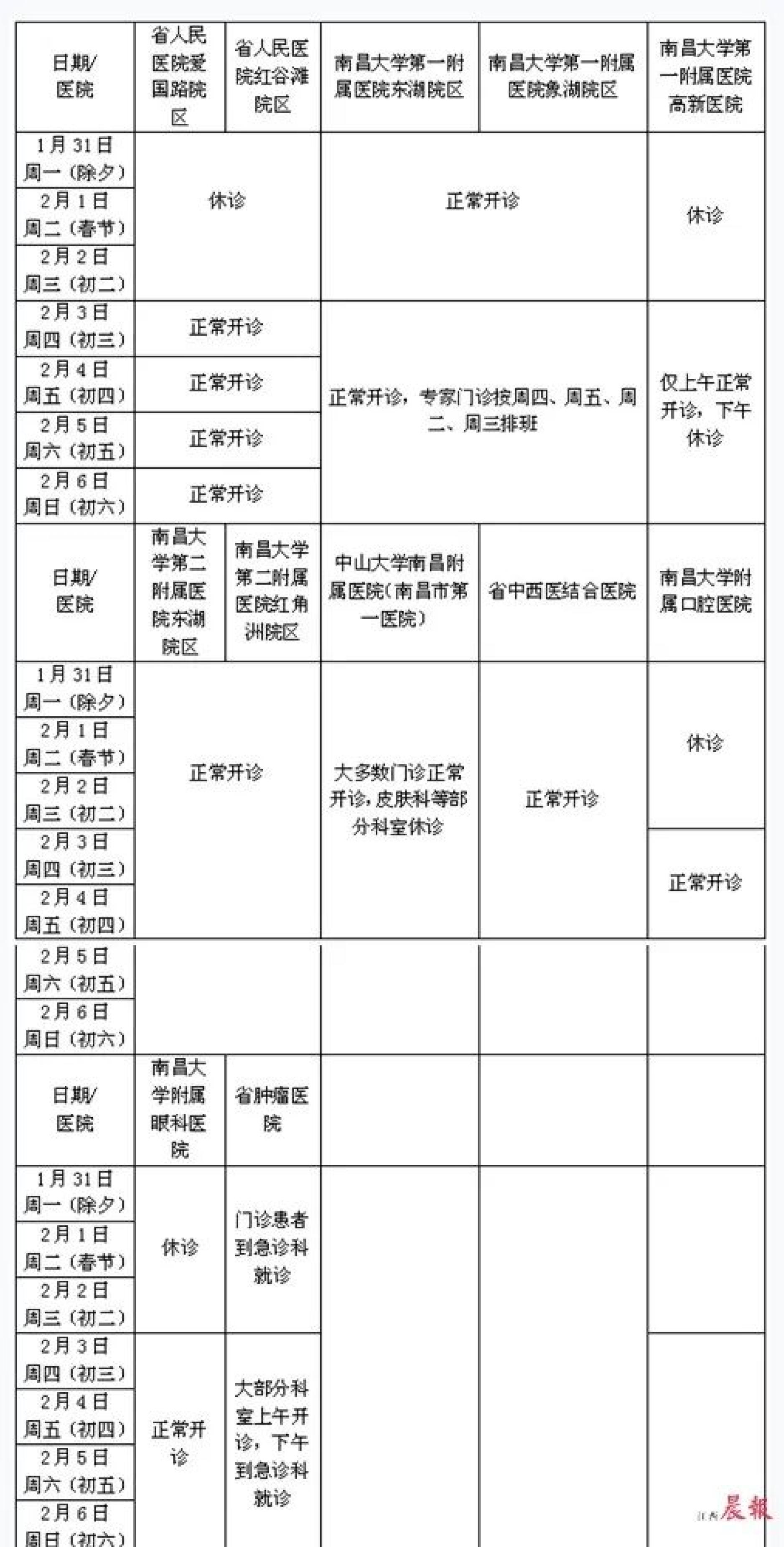南昌市区各医院门诊的具体安排