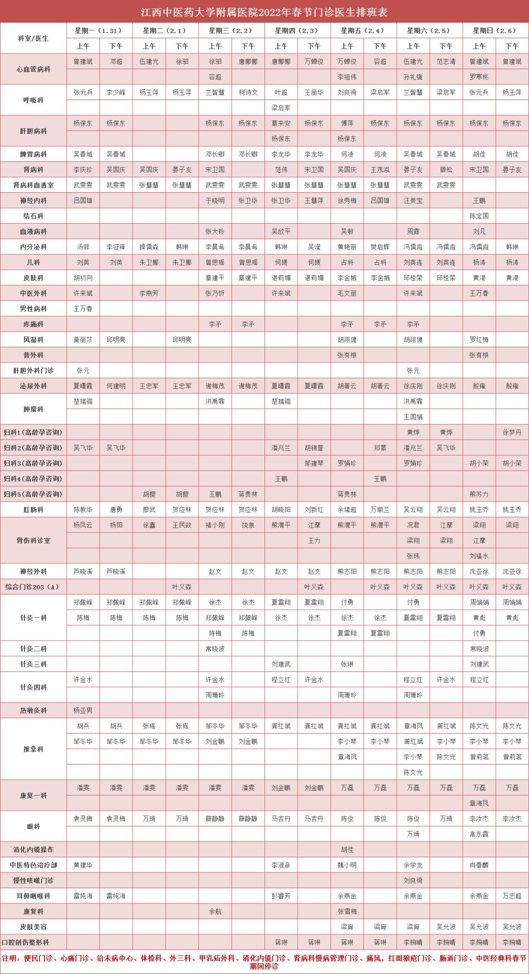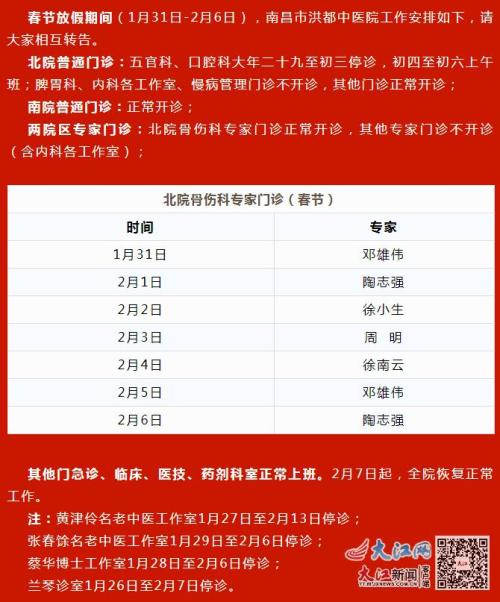 红谷滩门诊部及体检中心春节期间不开诊。