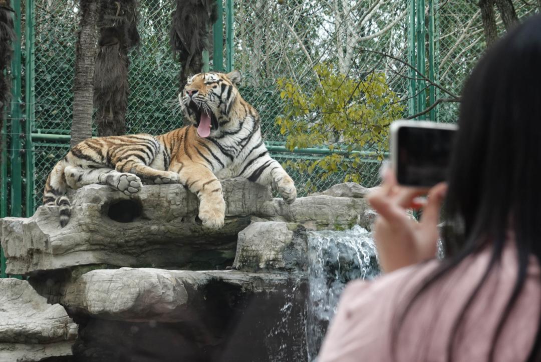 在旁看着小家伙们啃食的动物奶爸也同时推荐一定要去“老虎扑食”区域,幸会那里的东北虎“大胖”,原来“大胖”爬树、走梅花桩,游泳十八般武艺全会,它竟无师自通学会了“潜水”。引得驻足的游客们发出阵阵惊叹和欢呼声,加上是虎年,近期“人气”直线飙升。来看东北虎“大胖”成了游客们勇敢又励志的游园线路之一。