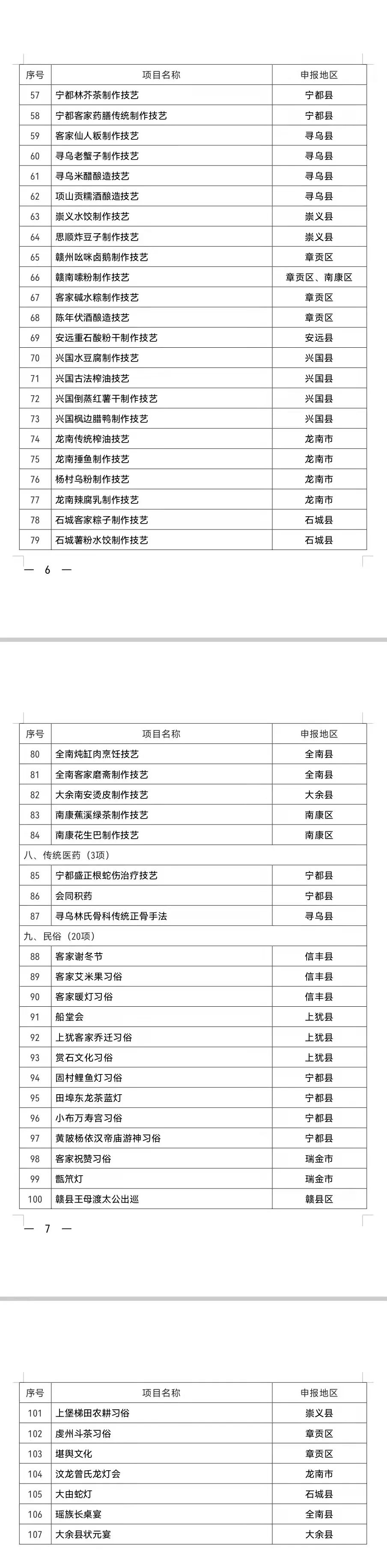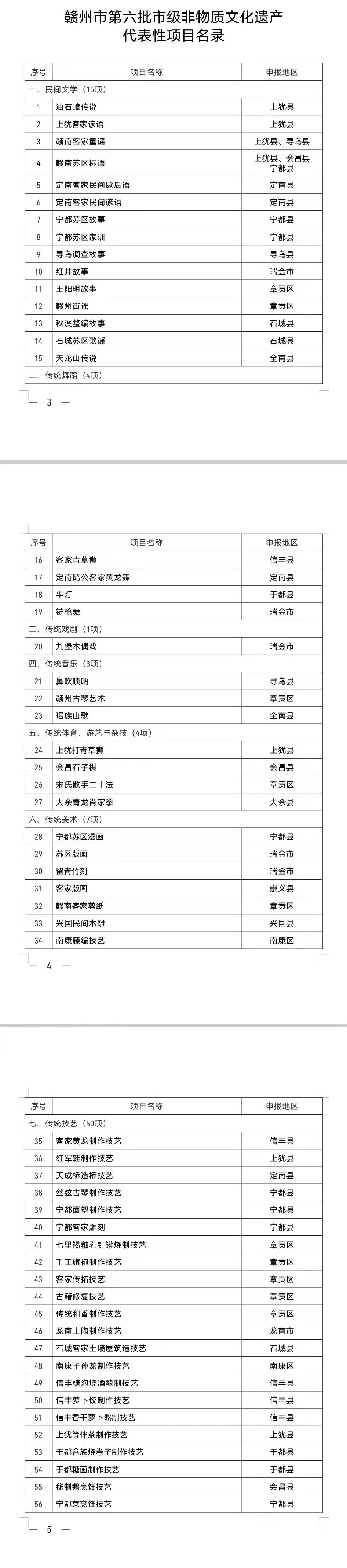 赣州市第六批市级非物质文化遗产代表性项目名录(共计107项)已于2022年1月24日经市政府第八次常务会议审议通过,现予公布。
