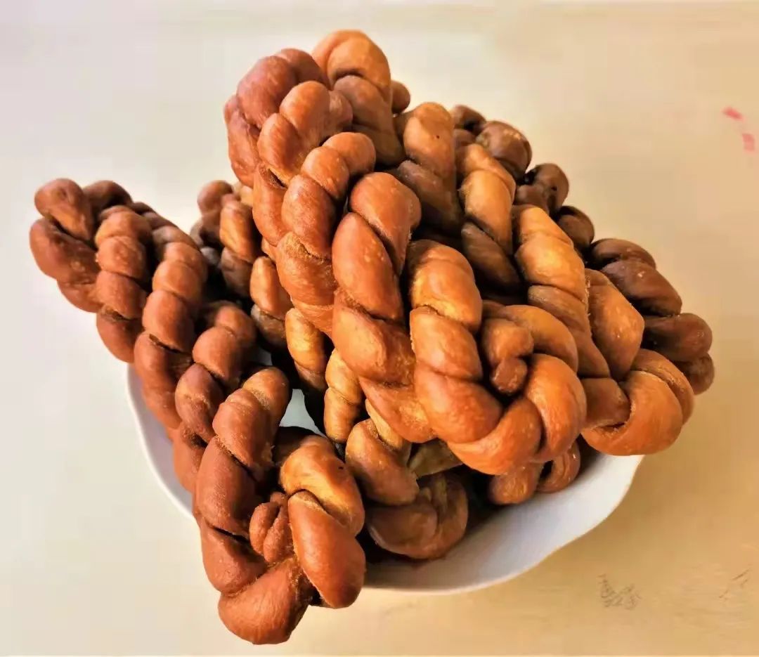 搓麻花是我小时候最喜欢做的手工活儿,搓面条绕八字,一根麻花就搓好了,我搓的麻花总是歪歪扭扭不成样子,而母亲搓的却直溜溜的,油锅里炸出来也是那样好看。腊月十九那天,儿子高兴地发来视频展示姥姥做的“软麻花”:“我们今天炸麻花了,我还要给妈妈和姐姐带回去吃呢。”