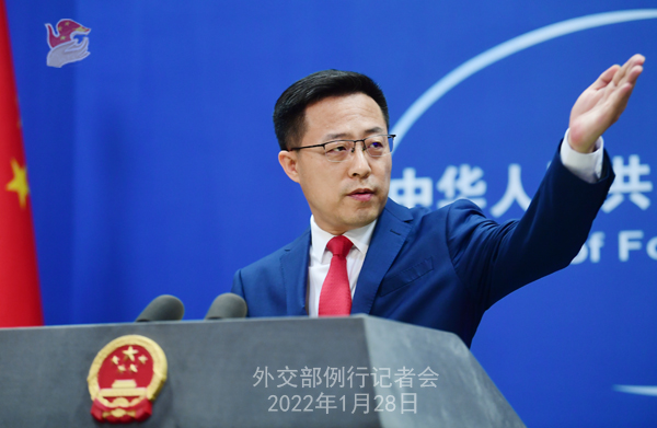1月28日下午,在外交部例行记者会上,外交部发言人赵立坚介绍了“和平·友谊·爱”音乐会情况。