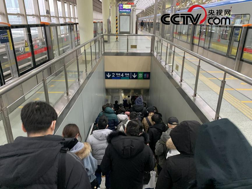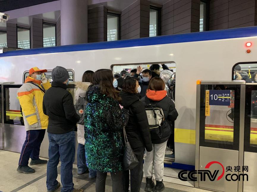 文明疏导员在站台引导乘车秩序 央视网记者王静远摄