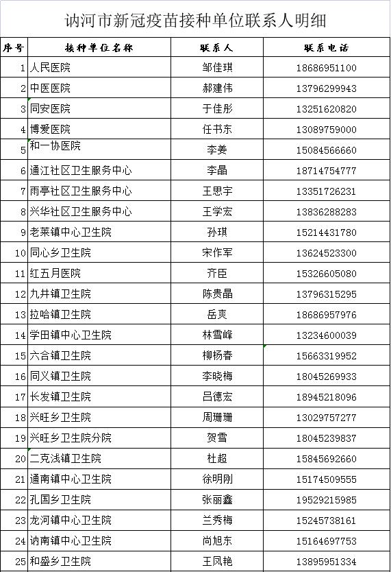 附:接种单位联系人明细表
