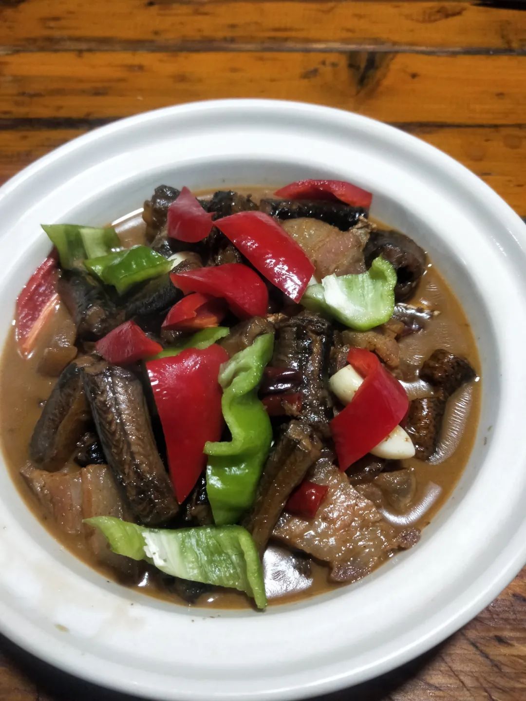 土法腌制的本地腊肉,炒至晶莹剔透,加入本地野生黄鳝,精心烹制后,色香味俱佳。寓意长长久久,源远流长。