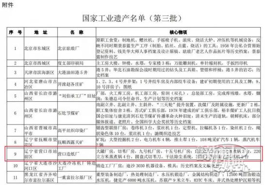 营口造纸厂现存的四座厂房、部分蒸煮锅、凸版纸机等被列入国家工业遗产,国家发改委公布的《推动老工业城市工业遗产保护利用实施方案》定位工业遗产为“社会主义先进文化的典型代表”。