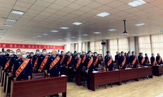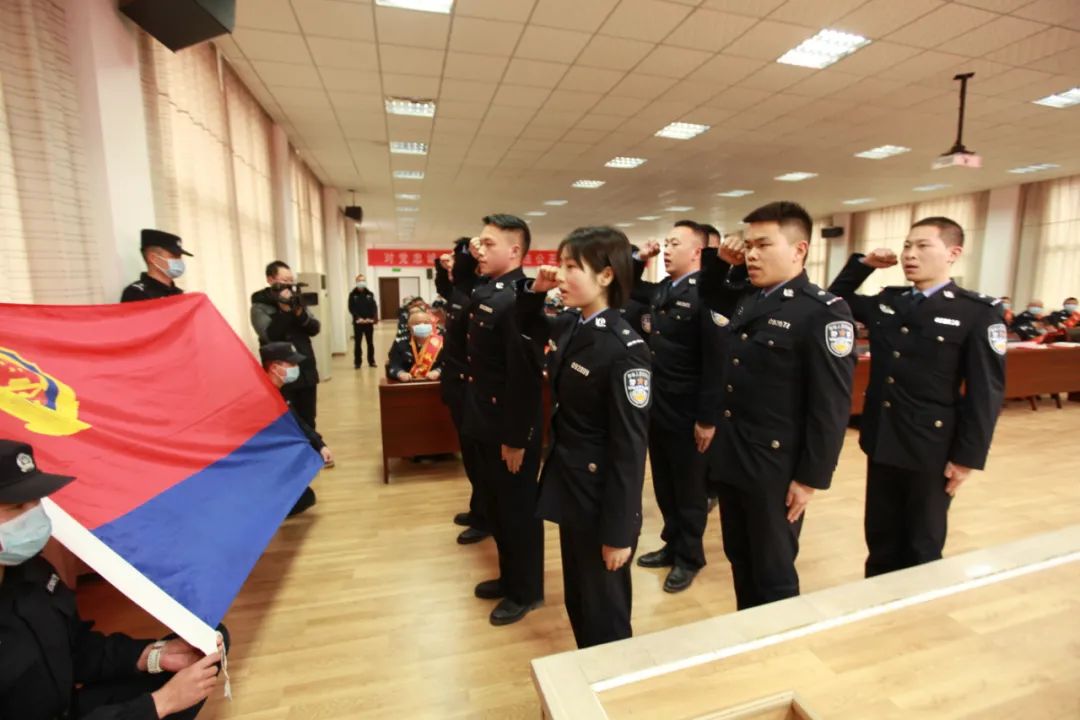 会上,新入职民警进行了宣誓。新警张钏渔代表全体新警庄严承诺:扎根基层找定位,立足岗位承担当。勤于学习先进的警事技能、警务理念,主动适应新形势、新要求,在理论学习中求真学问,在实践中练就真本领,坚决把“对党忠诚、服务人民、执法公正、纪律严明”的总要求铭刻于心,永葆绝对忠诚、绝对纯洁、绝对可靠的政治本色。