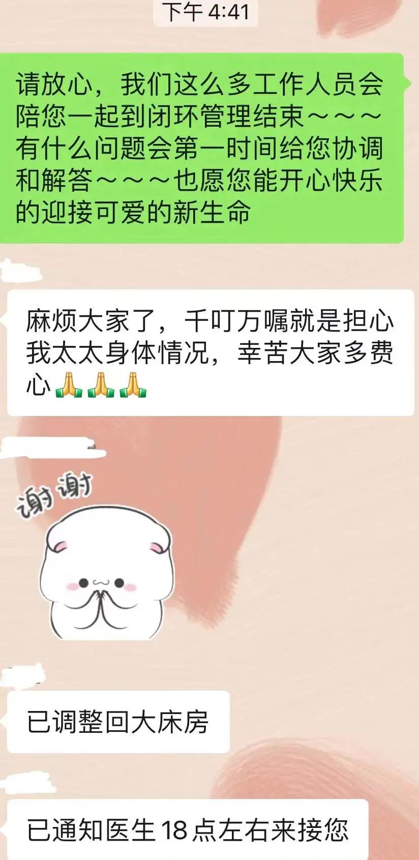 从生活所需、医护介绍、隔离日常,面对这位准妈妈的每一个问题,都有专人予以耐心且详细地解答,并且承诺——工作组人员24小时在线、全程陪伴。